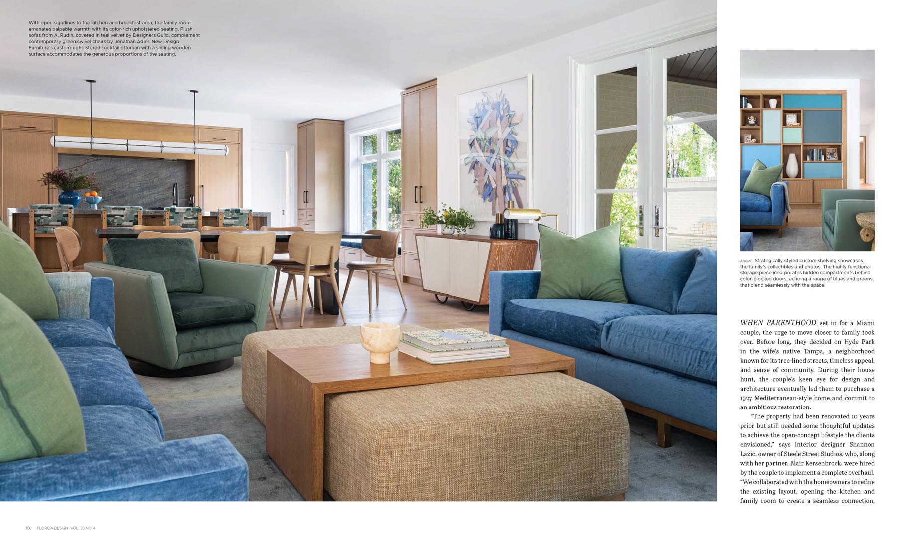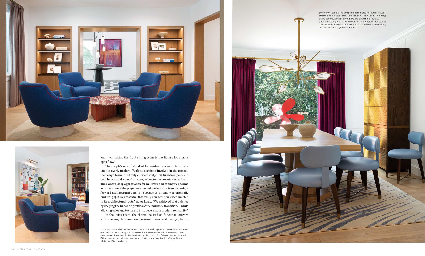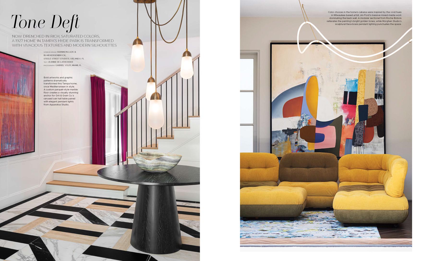 NOW DRENCHED IN RICH, SATURATED COLORS, A 1927 HOME IN TAMPA’S HYDE PARK IS TRANSFORMED WITH VIVACIOUS TEXTURES AND MODERN SILHOUETTES